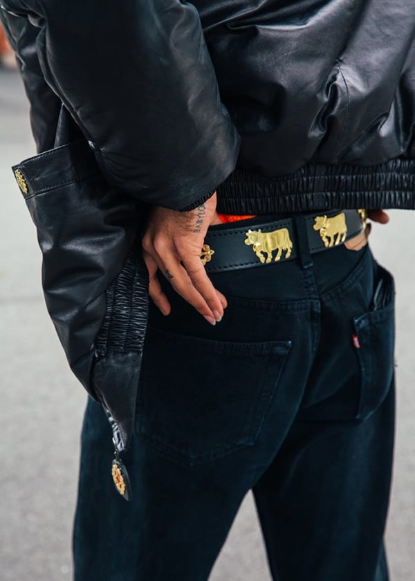 Anti-transishing rass riveted Ornaments: cows, suns, flowers and heart Belt Tip
